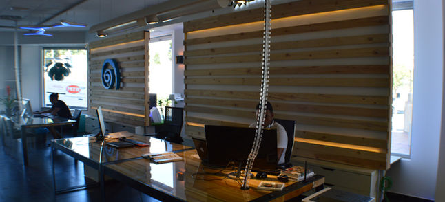 Diseño de espacios de trabajo , decoración mural y diseño de mobiliario todo en inspiración industrial, con espacios abiertos y sala de reuniones.